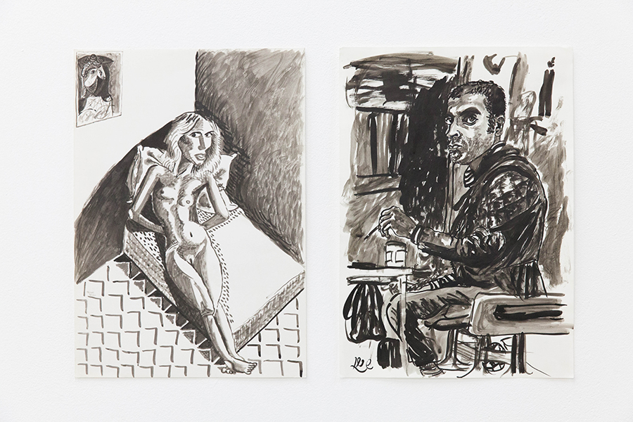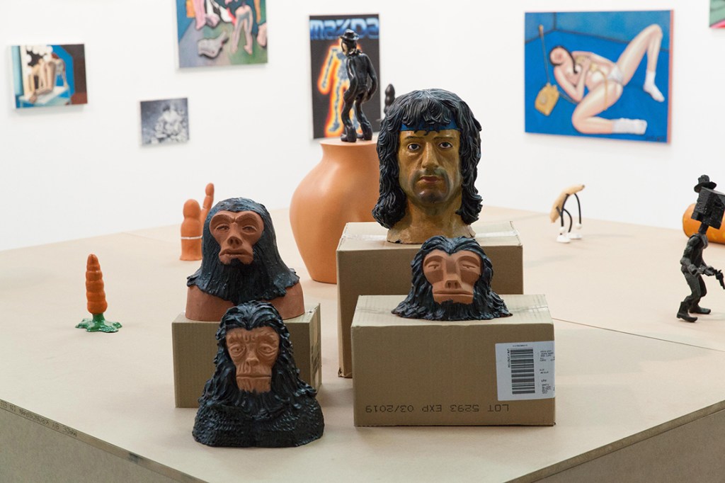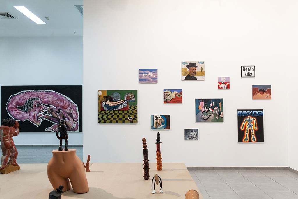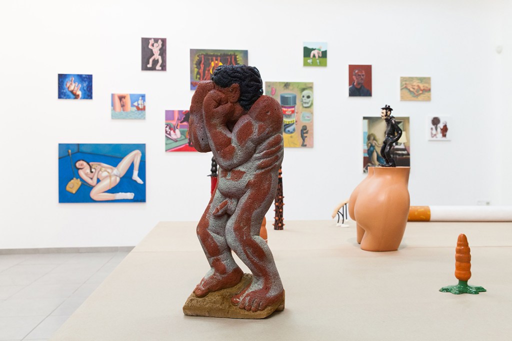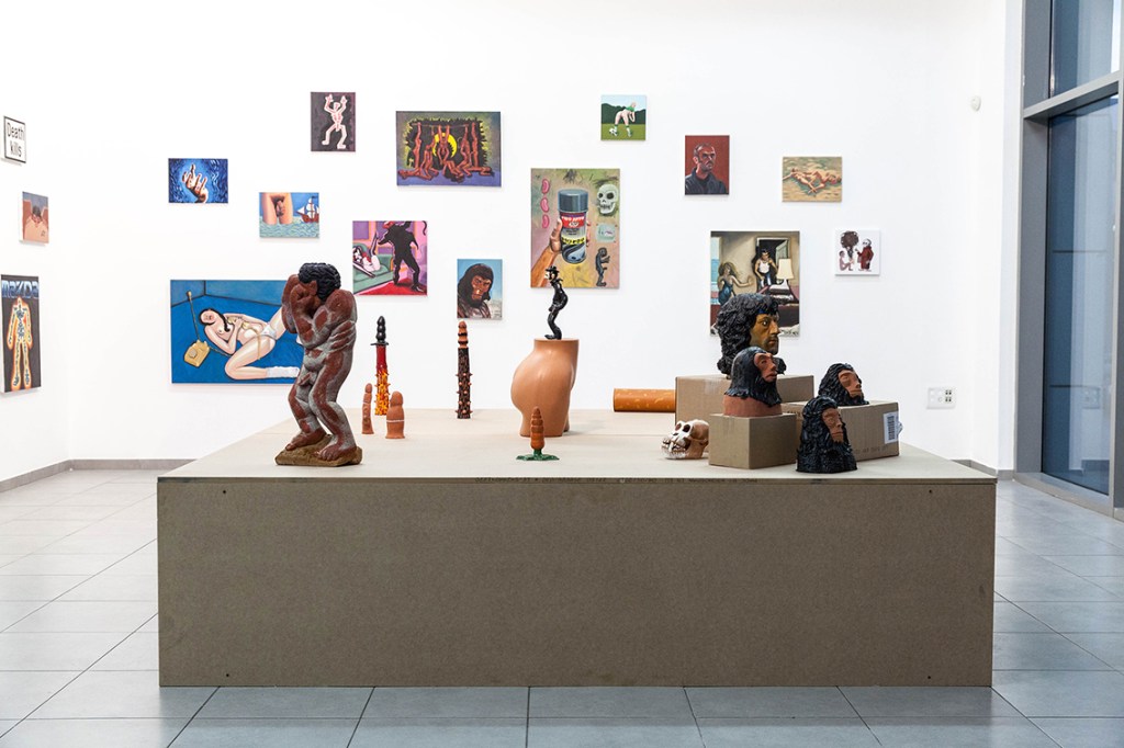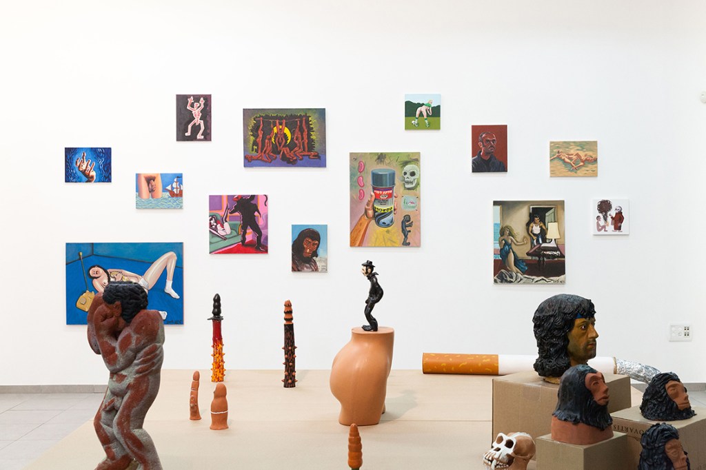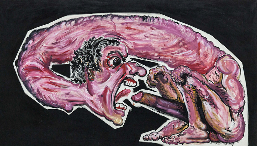 On a solitary wall there’s a huge painting (3×1.5 meters): The Ego Monster. The artist as monster with a huge erection and the head of the monster turns against it in order to devour his own dick.