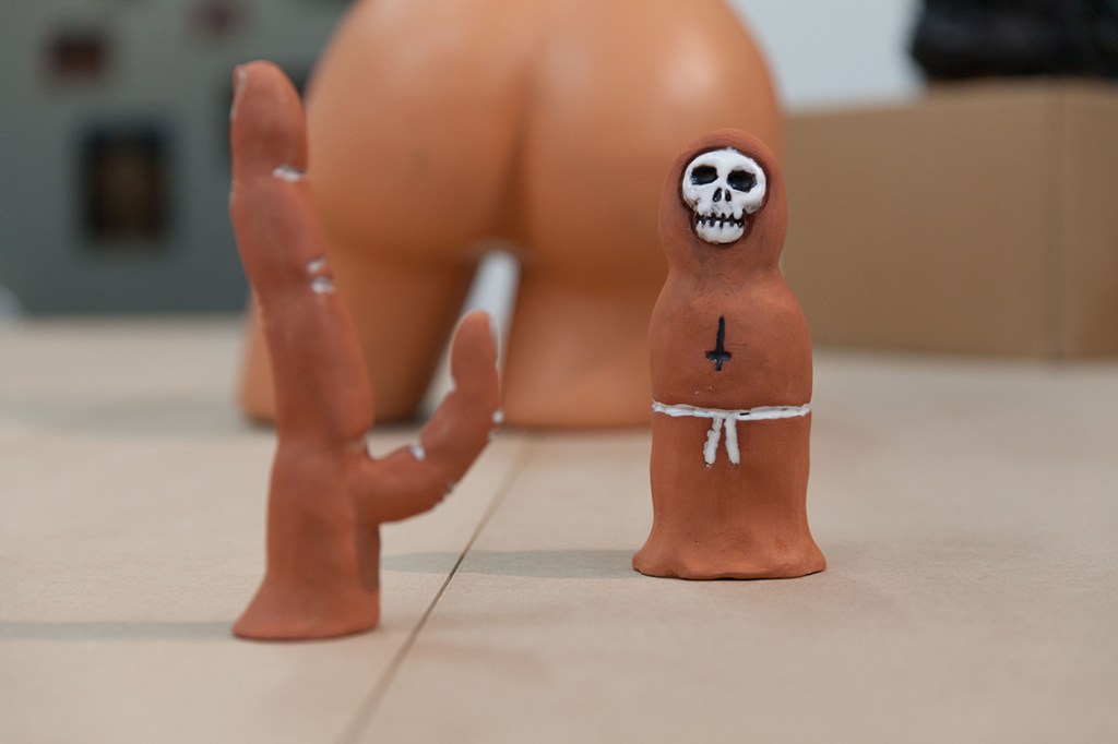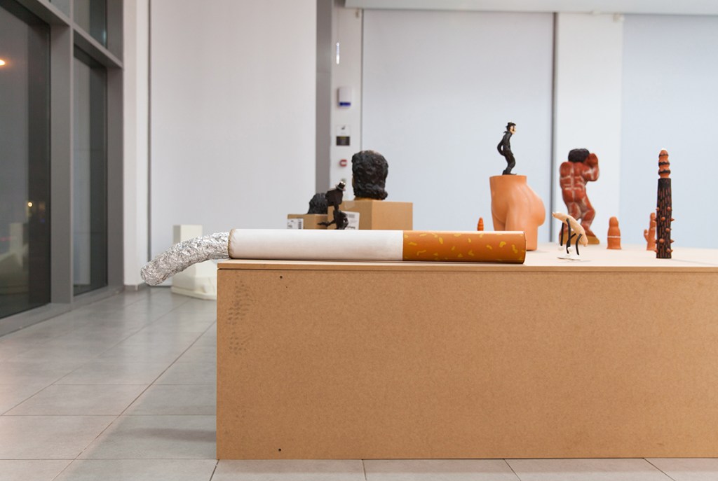 The show consist of the works during the following period, which are ironically desplay the pain and desire of the man as Artist. The objects are reffered to sex toys and represents pain more then pleasure. The Carrot, for example, is an anal-plug alike object, which reffer to the metaphor of “the carrot and the stick”, and stands on the same display along with the other two spiked “sticks” and such.
